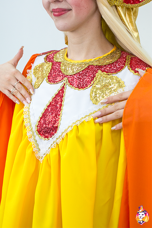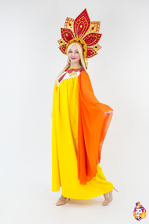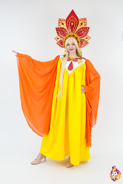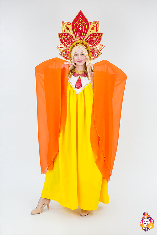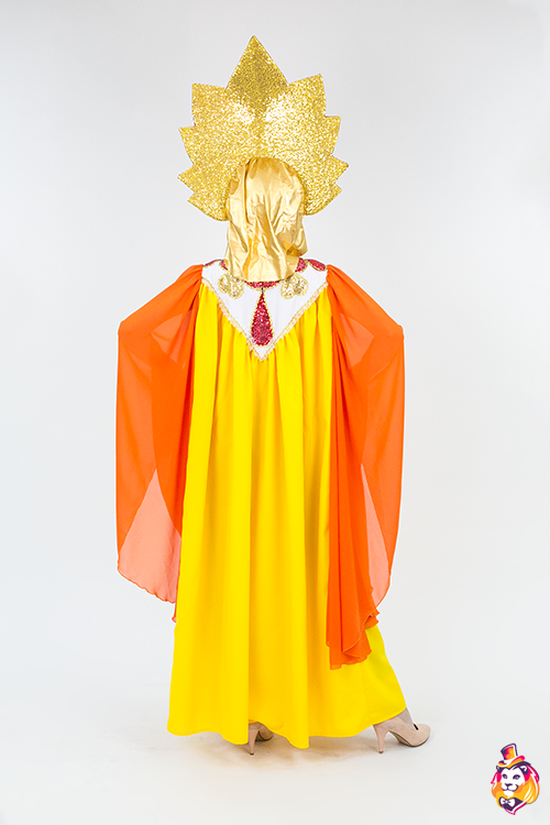 - Package content Carnival costume Sun is a memorable image at the most fun and fabulous events. The festive outfit looks bright and stylish, while it does not restrict movement. In the Sun carnival costume, you will definitely attract the attention of the public and be the center of attention! On our production Carnival Mascot it is convenient to order and buy any carnival costume, all the ideas of the customer will be fulfilled. We produce branded carnival costumes in branded colors with a logo and symbols. Our products are made of modern eco friendly materials, durable and convenient to use. There may be slight differences from the image, since each product is made individually! Package contents: Headdress, sundress.