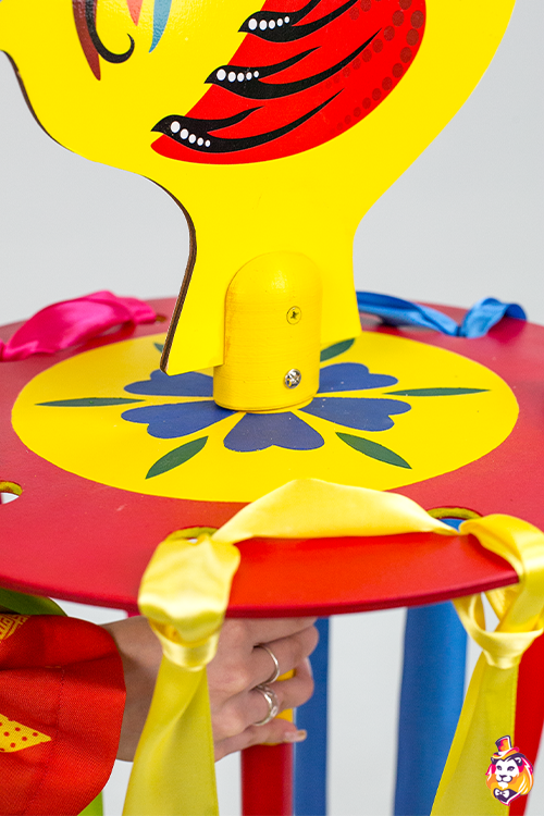 - Package content A tall pole to which long multi-colored ribbons are attached.