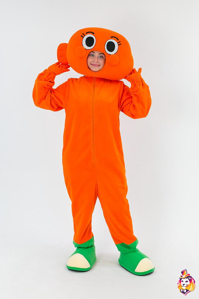- Package content Carnival costume Orange fish is a memorable image at the most fun and fabulous events. The festive outfit looks bright and stylish, while it does not restrict movement. In the Orange fish carnival costume, you will definitely attract the attention of the public and be the center of attention! On our production Carnival Mascot it is convenient to order and buy any carnival costume, all the ideas of the customer will be fulfilled. We produce branded carnival costumes in branded colors with a logo and symbols. Our products are made of modern eco friendly materials, durable and convenient to use. There may be slight differences from the image, since each product is made individually! Package content: Open-face headgear (foam frame covered with fabric), overalls, a pair of gloves, a pair of shoes (foam frame covered with fabric, with polyurethane soles)