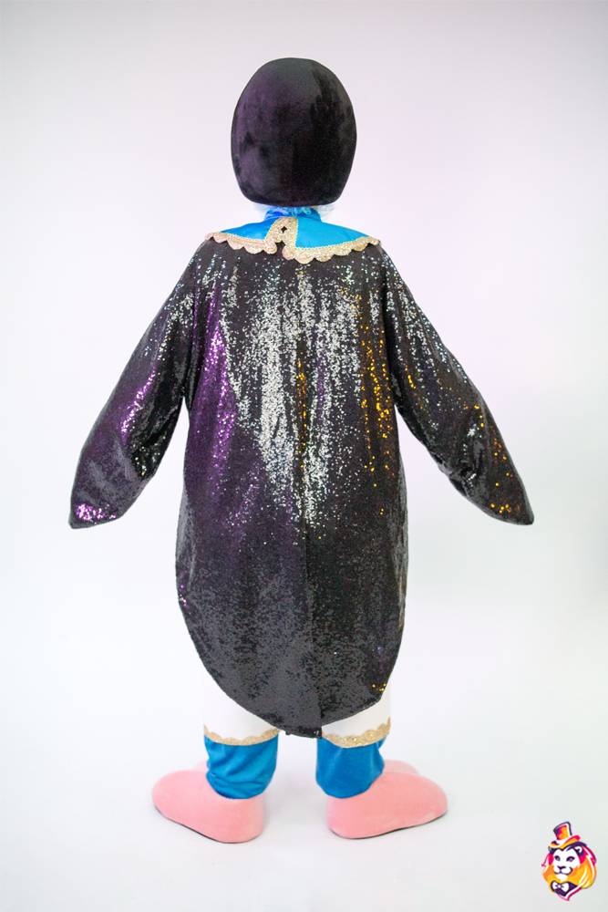 - Package content Carnival costume Penguin Boy is a memorable image at the most fun and fabulous events. The festive outfit looks bright and stylish, while it does not restrict movement. In the Penguin Boy carnival costume, you will definitely attract the attention of the public and be the center of attention! On our production Carnival Mascot it is convenient to order and buy any carnival costume, all the ideas of the customer will be fulfilled. We produce branded carnival costumes in branded colors with a logo and symbols. Our products are made of modern eco friendly materials, durable and convenient to use. There may be slight differences from the image, since each product is made individually! Package content: Headdress, overalls, tailcoat, collar, gloves, shoes (foam frame covered with fabric, on polyurethane soles)