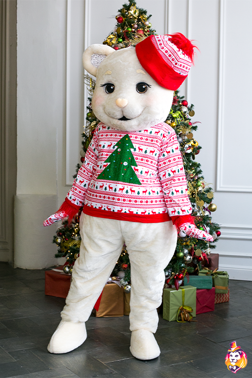 - Package content The Christmas costume is a memorable costume that delights the public at events and promotions. Our costumes attract attention from afar; people always want to take a photo with the characters and share the photo with friends. In our company Carnival Factory it is convenient to order and buy any clothes for life-size dolls, all the customer’s ideas will be fulfilled. We produce branded suits in corporate colors with logos and symbols. Our products are made from modern environmentally friendly materials, durable and easy to use. There may be slight differences from the image as each product is made individually! Package contents: Jersey jacket with appliqué elements, hat and mittens.