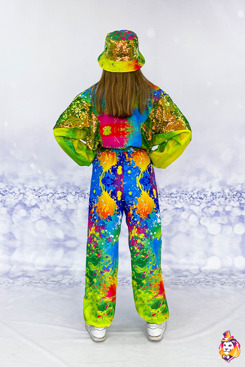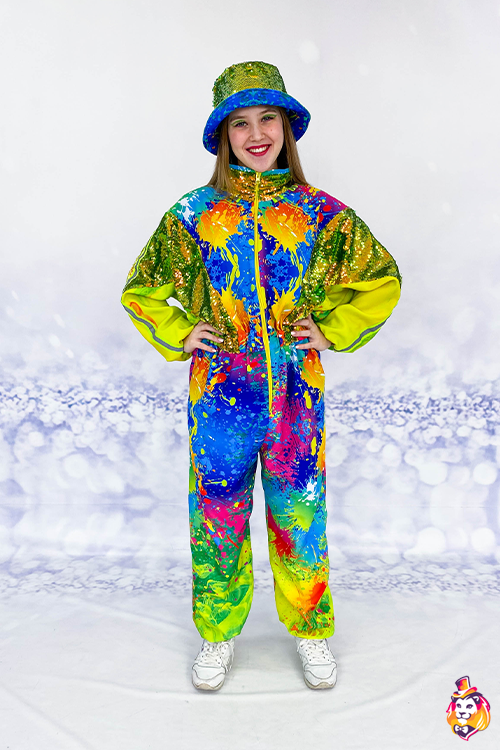 - Package content Jumpsuit made of gabardine and sequins, panama hat in the color of the overalls.