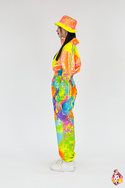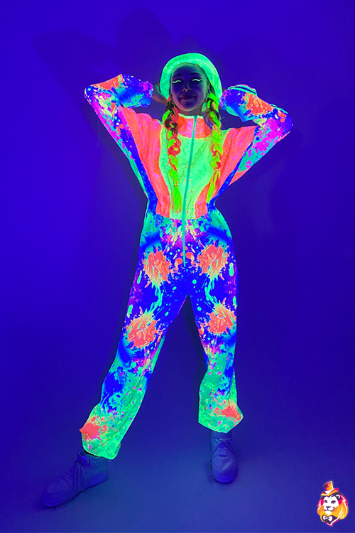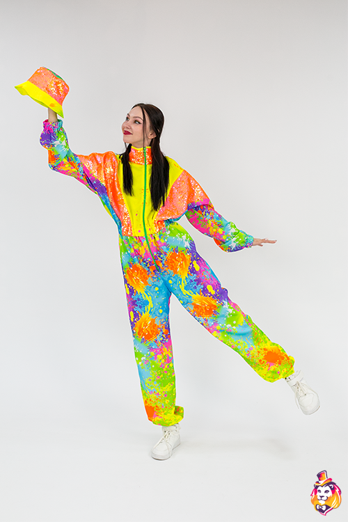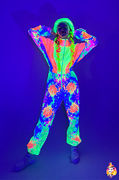- Package content The Neon Challenge Carnival costume is a memorable image at the most fun and fabulous events. The festive outfit looks bright and stylish, while it does not restrict movement. In the Neon Challenge carnival costume, you will definitely attract the attention of the public and be the center of attention! It is convenient to order and buy any carnival costume in our company Carnival Factory, all the ideas of the customer will be fulfilled. We produce branded suits in branded colors with a logo and symbols. Our products are made of modern environmentally friendly materials, durable and convenient to use. There may be slight differences from the image, as each product is made individually! Package contents: A jumpsuit made of gabardine and sequins, a panama hat in the color of the jumpsuit. It glows under ultraviolet light.