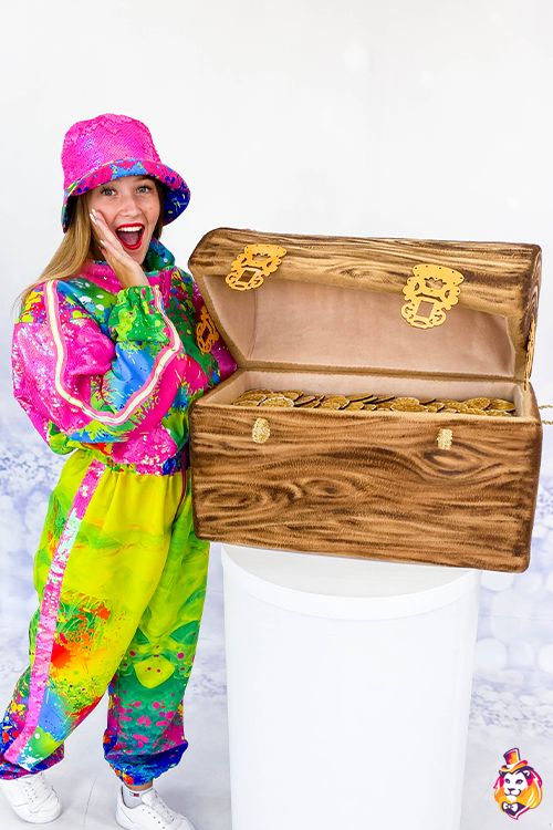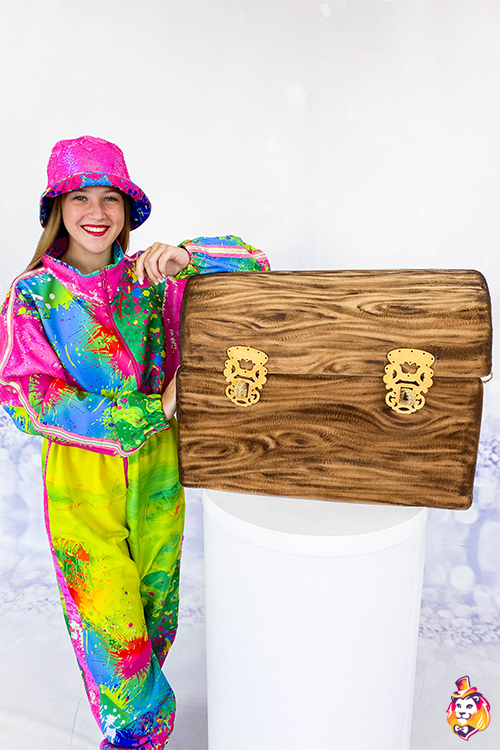 - Country of manufacture Wooden chest Game props- a faithful assistant to animators, perfect for children's parties and animation programs! The goods shown in the photo are in accordance with the procedure. Slight minor difference from the picture as each item is individually crafted!