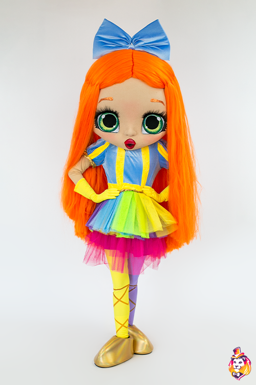 • Package content Doll Designer Mascot Costume is a memorable character who will delight the public at events and promotions. Our mascots attract attention from afar, people always want to take pictures with them and share photos with friends. Animators, advertising agencies and other companies choose our mascots for convenience in work and high-quality of costumes. On our production Carnival Mascot it is convenient to order and buy any mascot costume, all the ideas of the customer will be fulfilled. We produce branded mascots in branded colors with a logo and symbols. At the request of the customer, we can add animatronics - the mascot will be as alive and will be able, for example, to wink and open its mouth. Our products are made of modern eco friendly materials, durable and convenient to use. There may be slight differences from the image, since each product is made individually! Package contents: Head: foam rubber frame covered with fleece, viewing area in the eyes, no additional ventilation holes, artificial hair, non-removable bow. Clothing: dress with voluminous tulle inserts. A pair of gloves, a pair of shoes (foam frame, covered with fabric, on a polyurethane sole).