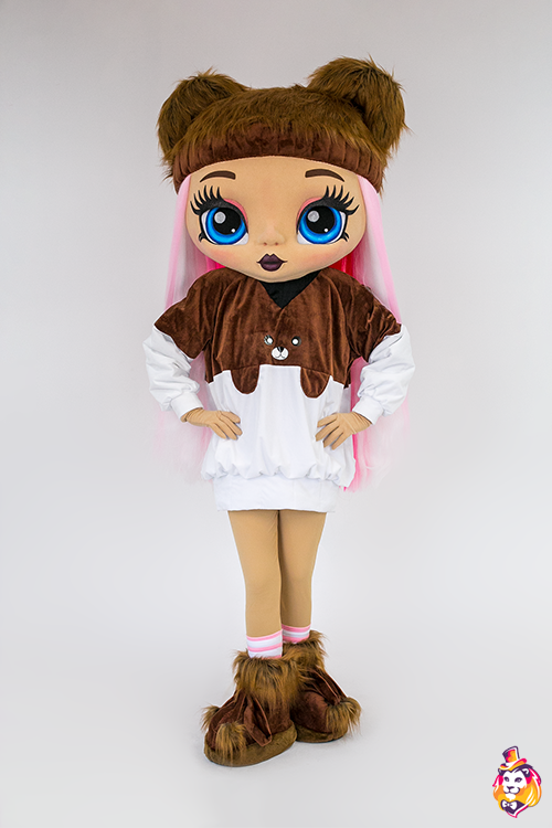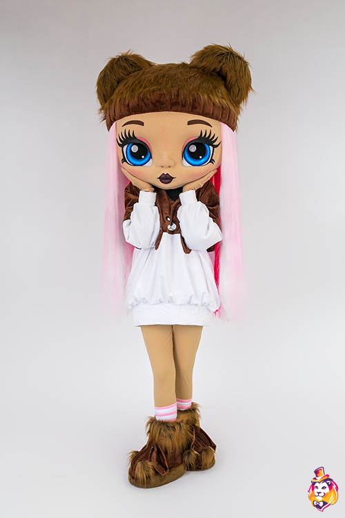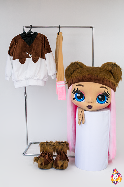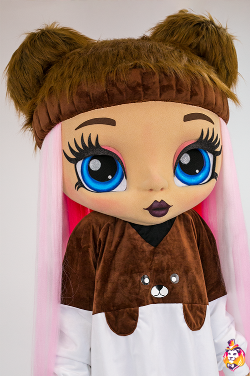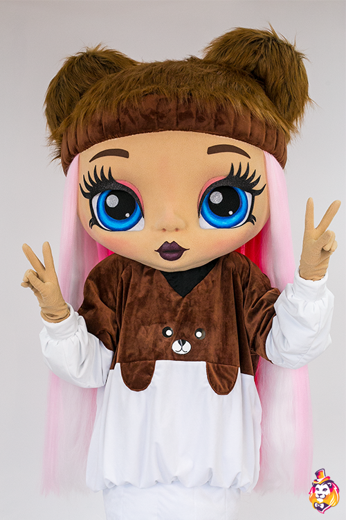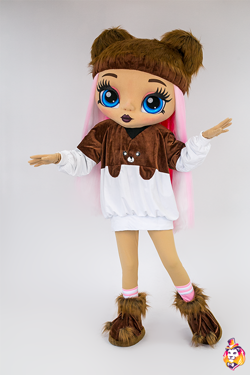 - Package content Doll Fanny Mascot Costume is a memorable character who will delight the public at events and promotions. Our mascots attract attention from afar, people always want to take pictures with them and share photos with friends. Animators, advertising agencies and other companies choose our mascots for convenience in work and high-quality of costumes. On our production Carnival Mascot it is convenient to order and buy any mascot costume, all the ideas of the customer will be fulfilled. We produce branded mascots in branded colors with a logo and symbols. At the request of the customer, we can add animatronics - the mascot will be as alive and will be able, for example, to wink and open its mouth. Our products are made of modern eco friendly materials, durable and convenient to use. There may be slight differences from the image, since each product is made individually! This product requires permission from the copyright holder. Package contents: Head - 3D mask on a foam frame, covered with fleece, mesh eyes, viewing area in the eyes, hair made of kanekalon. Body - biflex animator pants, a velvet hoodie, a pair of gloves, a pair of shoes (foam frame covered with fabric, with polyurethane soles).