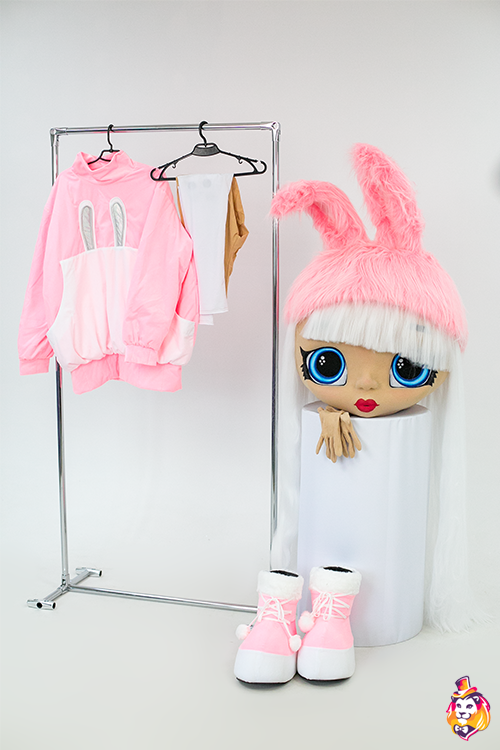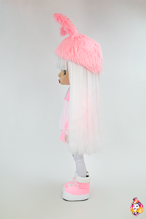 • Package content The head is a foam frame covered with fleece, mesh eyes, a viewing area in the eyes, additional ventilation holes in mercury, kanekalon hair. The torso is made of fleece and supplex animator pants, a velvet sweatshirt dress, a pair of gloves, a pair of shoes (foam rubber frame covered with fabric, with polyurethane soles).
