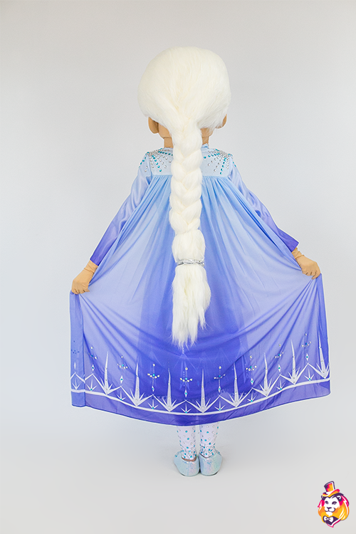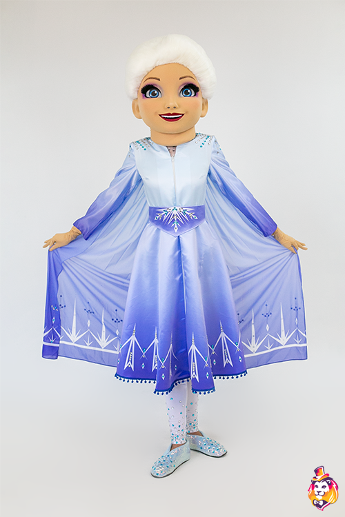 - Package content Ice Princess Mascot Costume is a memorable character who will delight the public at events and promotions. Our mascots attract attention from afar, people always want to take pictures with them and share photos with friends. Animators, advertising agencies and other companies choose our mascots for convenience in work and high-quality of costumes. On our production Carnival Mascot it is convenient to order and buy any mascot costume, all the ideas of the customer will be fulfilled. We produce branded mascots in branded colors with a logo and symbols. At the request of the customer, we can add animatronics - the mascot will be as alive and will be able, for example, to wink and open its mouth. Our products are made of modern eco friendly materials, durable and convenient to use. There may be slight differences from the image, since each product is made individually! This product requires permission from the copyright holder. Package contents: Head - 3D mask covered with a biflex, mesh eyes, viewing area in the eyes, additional ventilation hole in the nose, fur hair. Body - zipper dress with a satin train with a full-color print; a white, translucent mesh turtleneck; leggings; a pair of gloves; a pair of shoes.