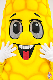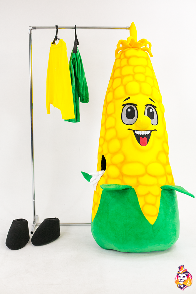 - Package content Corn Mascot Costume is a memorable character who will delight the public at events and promotions. Our mascots attract attention from afar, people always want to take pictures with them and share photos with friends. Animators, advertising agencies and other companies choose our mascots for convenience in work and high-quality of costumes. On our production Carnival Mascot it is convenient to order and buy any mascot costume, all the ideas of the customer will be fulfilled. We produce branded mascots in branded colors with a logo and symbols. At the request of the customer, we can add animatronics - the mascot will be as alive and will be able, for example, to wink and open its mouth. Our products are made of modern eco friendly materials, durable and convenient to use. There may be slight differences from the image, since each product is made individually! Package content: An isolon frame covered with knitted fabric in the shape of a corn with voluminous decorative elements and stripes. A turtleneck and pants of the animator made of fleece. A pair of gloves, a pair of shoes (foam frame covered with fabric, on a polyurethane sole).