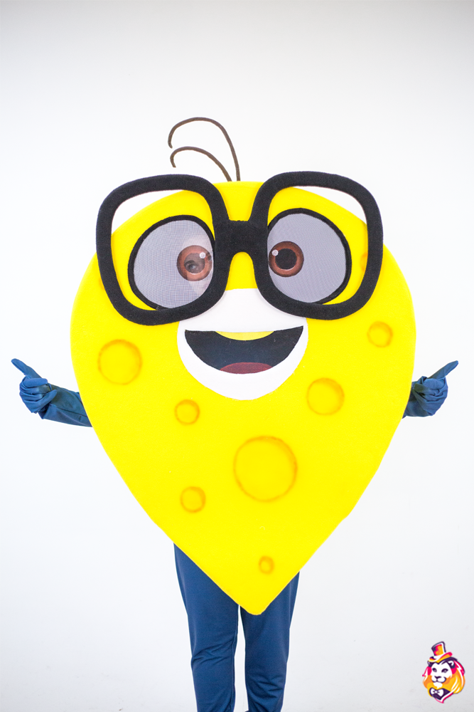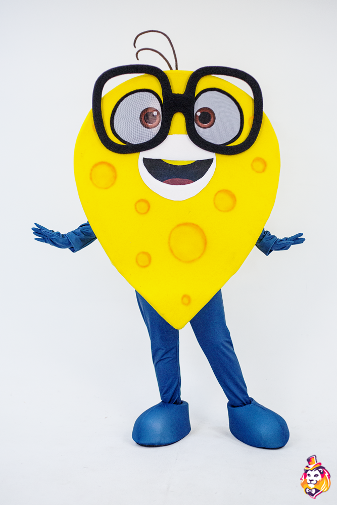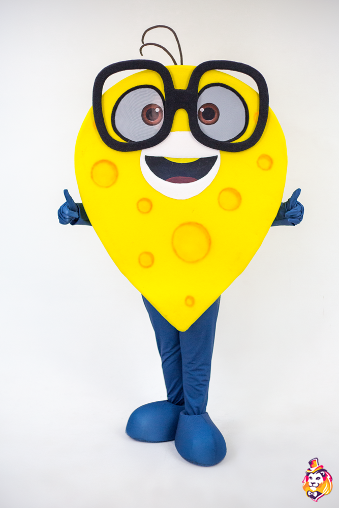 - Package content Piece of Cheese Mascot Costume is a memorable character who will delight the public at events and promotions. Our mascots attract attention from afar, people always want to take pictures with them and share photos with friends. Animators, advertising agencies and other companies choose our mascots for convenience in work and high-quality of costumes. On our production Carnival Mascot it is convenient to order and buy any mascot costume, all the ideas of the customer will be fulfilled. We produce branded mascots in branded colors with a logo and symbols. At the request of the customer, we can add animatronics - the mascot will be as alive and will be able, for example, to wink and open its mouth. Our products are made of modern eco friendly materials, durable and convenient to use. There may be slight differences from the image, since each product is made individually! Package content: A fabric-covered, isolon frame in the shape of a cheese. Viewing area in the eyes; additional ventilation hole in the mouth. A turtleneck and pants for the animator. A pair of gloves, a pair of shoes (foam frame covered in fabric, with polyurethane soles).