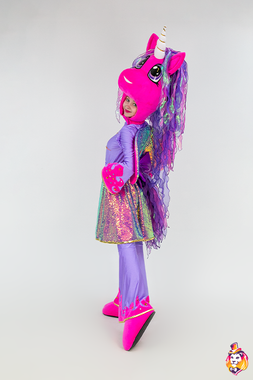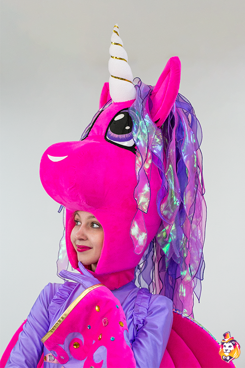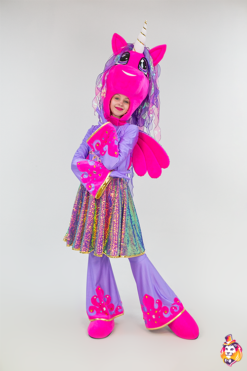 - Package content Carnival costume Purple unicorn is a memorable image at the most fun and fabulous events. The festive outfit looks bright and stylish, while it does not restrict movement. In the Purple unicorn carnival costume, you will definitely attract the attention of the public and be the center of attention! On our production Carnival Mascot it is convenient to order and buy any carnival costume, all the ideas of the customer will be fulfilled. We produce branded carnival costumes in branded colors with a logo and symbols. Our products are made of modern eco friendly materials, durable and convenient to use. There may be slight differences from the image, since each product is made individually! Package contents: Head - foam rubber frame covered with fabric; trousers, jacket, sequin skirt, wings. A pair of gloves, a pair of shoes (foam frame, covered with fabric, on a polyurethane sole).