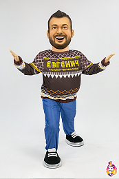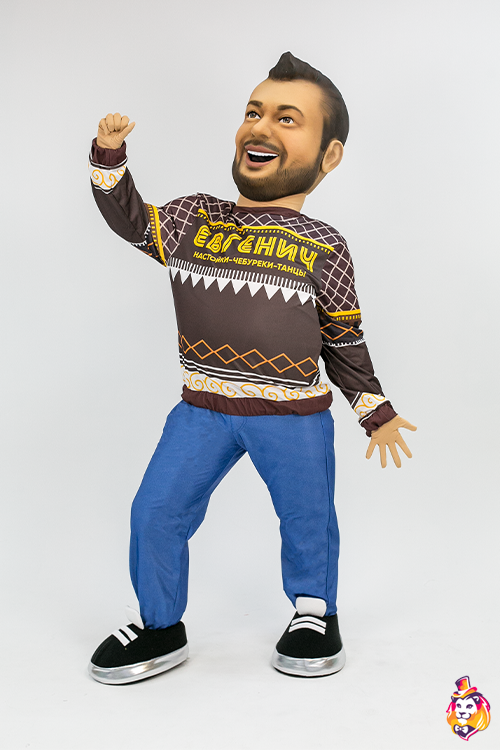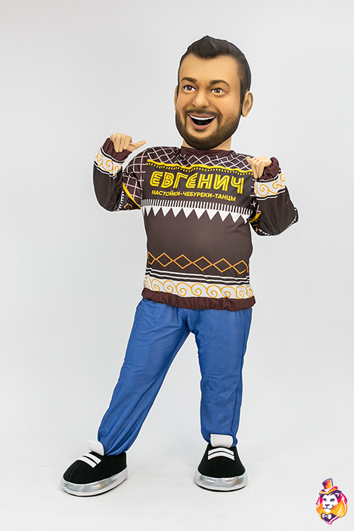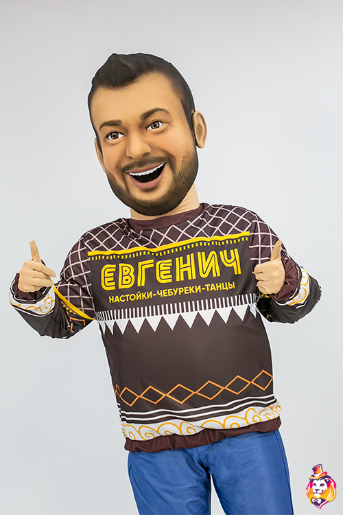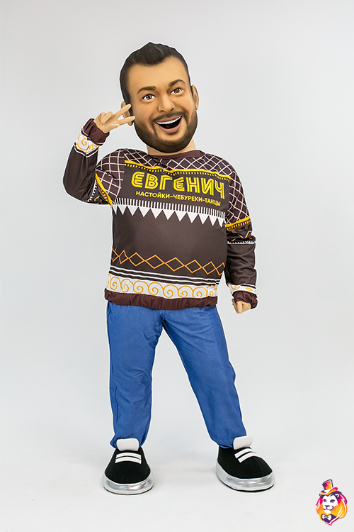 - Package content Evgenich the bar Costume is a memorable сostume who will delight the public at events and promotions. Our сostume attract attention from afar, people always want to take pictures with them and share photos with friends. Animators, advertising agencies and other companies choose our сostume for convenience in work and high-quality of costumes. On our production Carnival Mascot it is convenient to order and buy any mascot costume, all the ideas of the customer will be fulfilled. We produce branded mascots in branded colors with a logo and symbols. Our products are made of modern eco friendly materials, durable and convenient to use. There may be slight differences from the image, since each product is made individually! Package contents: Sweater with a built-in belly, trousers - jeans, a pair of shoes (foam rubber frame, covered with fabric, with polyurethane soles). There is a full-color print. The head, body and gloves are not included.
