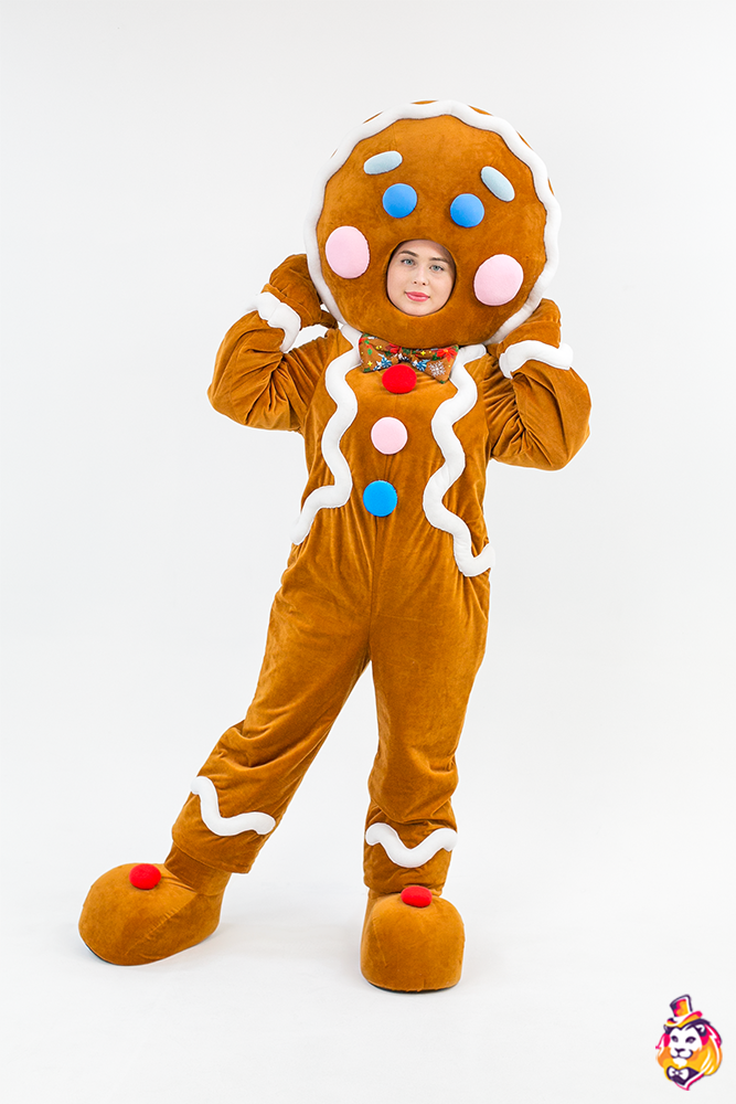 - Package content Carnival costume Gingerbread Cookie is a memorable image at the most fun and fabulous events. The festive outfit looks bright and stylish, while it does not restrict movement. In the Gingerbread Cookie carnival costume, you will definitely attract the attention of the public and be the center of attention! On our production Carnival Mascot it is convenient to order and buy any carnival costume, all the ideas of the customer will be fulfilled. We produce branded carnival costumes in branded colors with a logo and symbols. Our products are made of modern eco friendly materials, durable and convenient to use. There may be slight differences from the image, since each product is made individually! Package content: Open-face headgear, overalls, a pair of mittens, a pair of shoes (foam frame covered with fabric, with polyurethane soles)