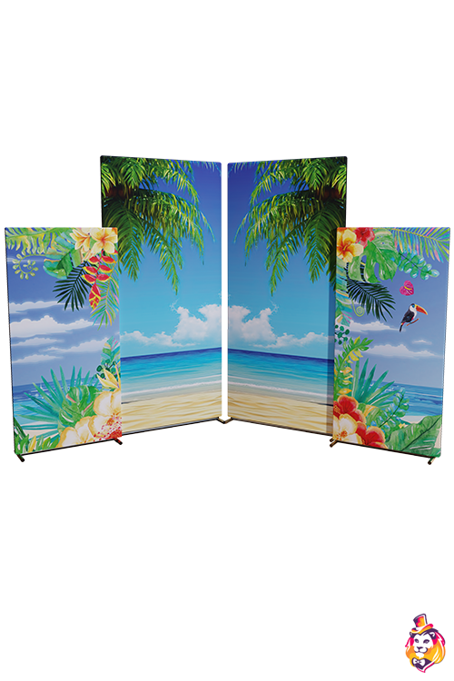 - Package content Hawaii banners is a great addition to the holiday and animation program. The photo zone will give your guests unforgettable emotions and create a bright and spectacular background for photos and videos from the holiday. We are developing thematic transformable photozone, the elements of which can be combined into different sets. So, by purchasing a base for a photo zone, you will be able to assemble various sets and options of photo zones for your clients. To our base for the photo zone, you can purchase themes covers in any theme from our range or develop an individual design. Thematic photo zones are an indispensable element in the organization of any event, which will especially delight visitors in a complex with life-size dolls and heroes in carnival costumes. The photo zones from the Carnival Mascot are distinguished by a large selection of themes, color and texture solutions.