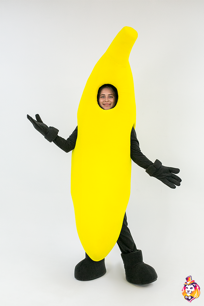 - Package content Carnival costume Banana is a memorable image at the most fun and fabulous events. The festive outfit looks bright and stylish, while it does not restrict movement. In the Banana carnival costume, you will definitely attract the attention of the public and be the center of attention! On our production Carnival Mascot it is convenient to order and buy any carnival costume, all the ideas of the customer will be fulfilled. We produce branded carnival costumes in branded colors with a logo and symbols. Our products are made of modern eco friendly materials, durable and convenient to use. There may be slight differences from the image, since each product is made individually! Package content: Izolon frame in the shape of a banana, covered with fabric; turtleneck and pants for the animator; a pair of gloves, a pair of shoes (foam frame, covered with fabric, on a polyurethane sole)