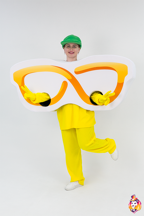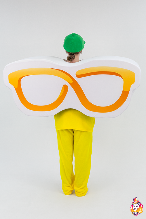 • Package content Carnival costume Glasses is a memorable image at the most fun and fabulous events. The festive outfit looks bright and stylish, while it does not restrict movement. In the Glasses carnival costume, you will definitely attract the attention of the public and be the center of attention! On our production Carnival Mascot it is convenient to order and buy any carnival costume, all the ideas of the customer will be fulfilled. We produce branded carnival costumes in branded colors with a logo and symbols. Our products are made of modern eco friendly materials, durable and convenient to use. There may be slight differences from the image, since each product is made individually! Package content: Izolon frame in the shape of glasses, covered with fabric; cap, turtleneck, pants, pair of gloves.